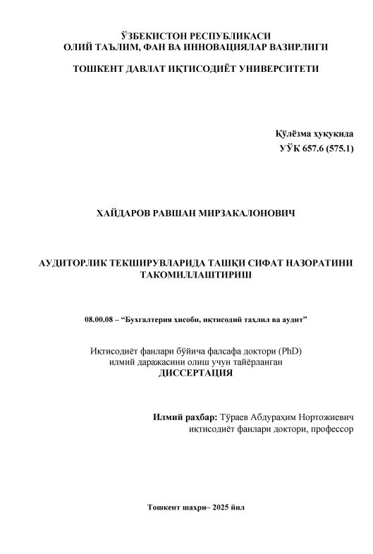 зарурати аудиторлик хизматларининг сифатини оширишни тақозо қилмоқда.