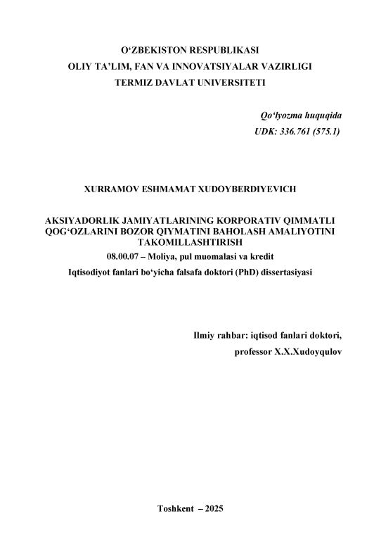 O’zbekistonda venchur moliyalashtirish tushunchasidan foydalanish
