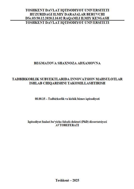 Kichik biznes korxonalarida innovatsion faoliyatni rivojlantirishning tashkiliy-iqtisodiy asoslarini takomillashtirish