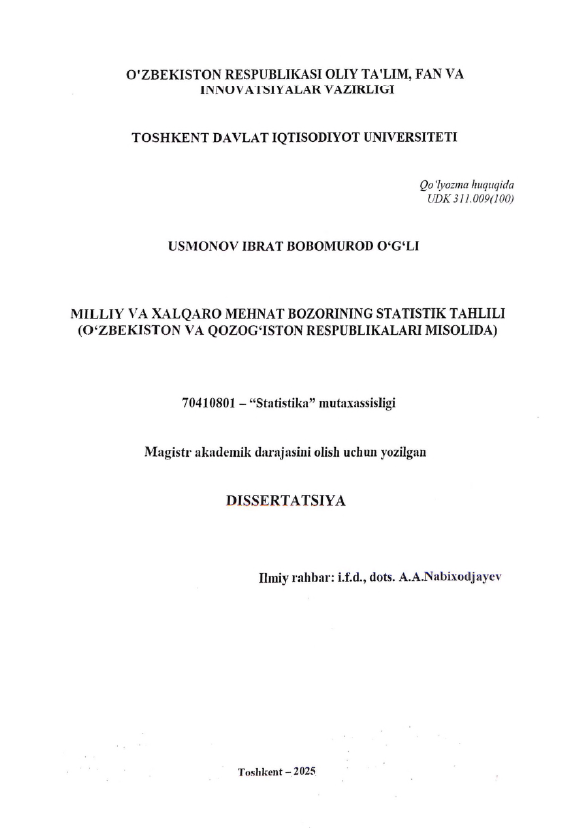 Miliy va xalqaro mehnat bozorini... Manba muallifi: Usmonov I. B.