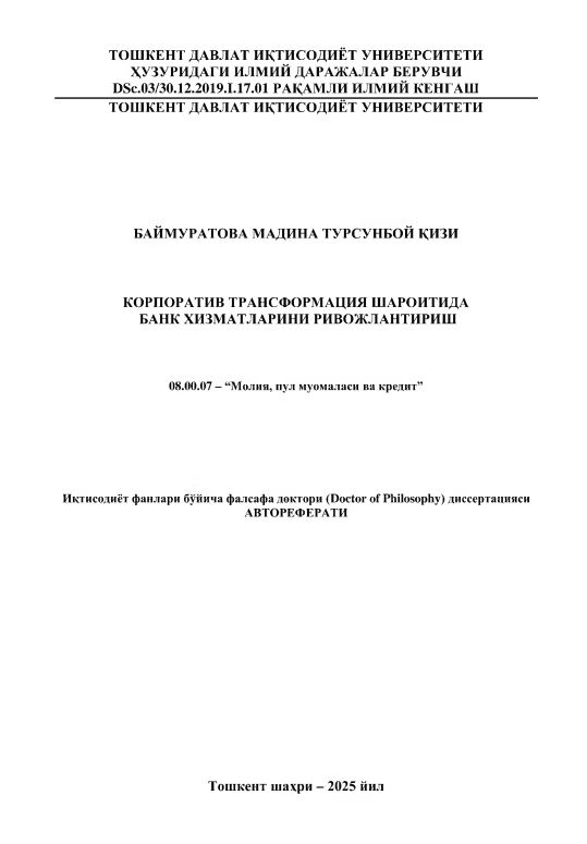 Корпоратив трансформация шароитида банк хизматларини ривожлантириш