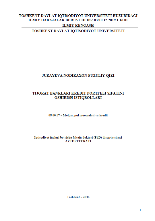 Tijorat banklari kredit portfeli sifatini oshirish istiqbollari