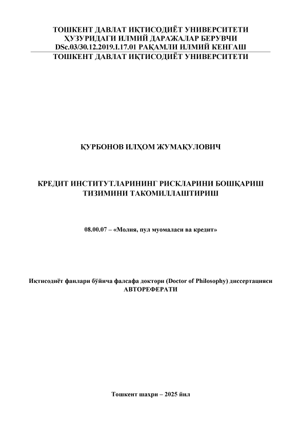 Кредит институтларининг рискларини бошқариш тизимини такомиллаштириш