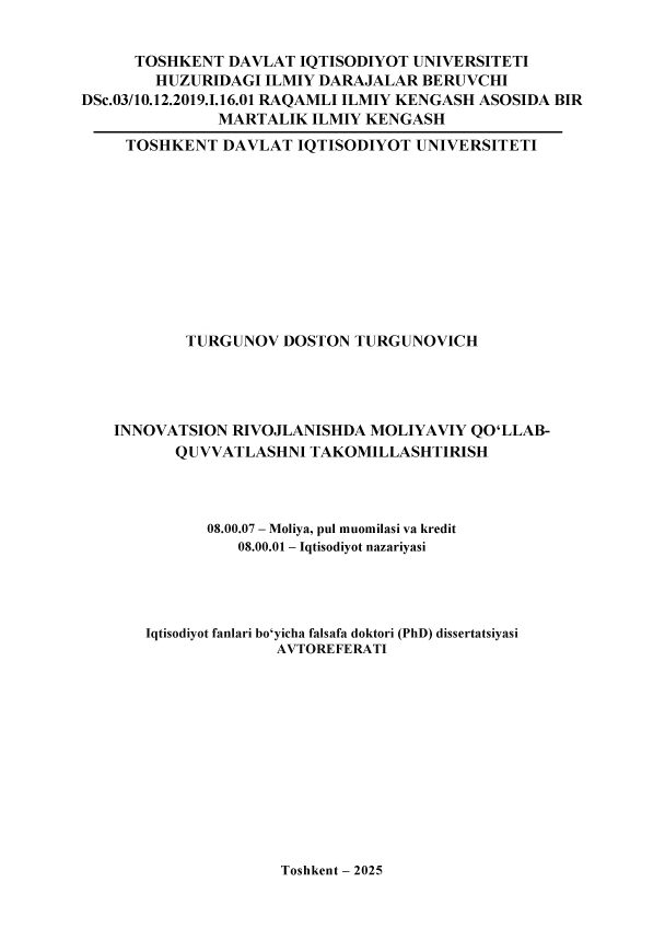 Innovatsion rivojlanishda moliyaviy qo‘llab-quvvatlashni takomillashtirish
