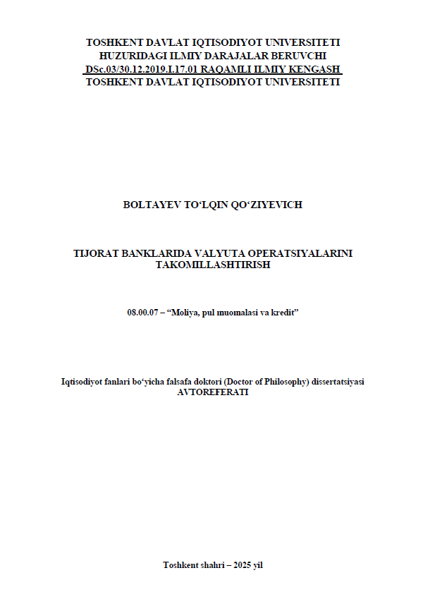Tijorat banklarida valyuta operatsiyalarini takomillashtirish