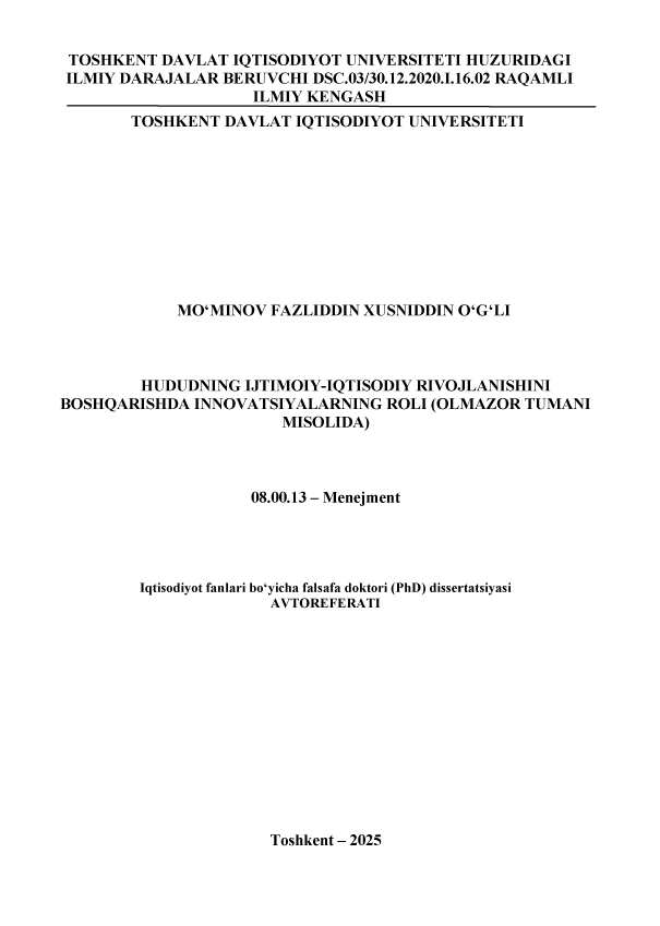 Hududning ijtimoiy-iqtisodiy riv... Manba muallifi: Mo'minov F.X.