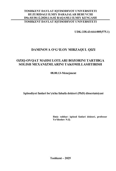 Oziq-ovqat mahsulotlari bozorini... Manba muallifi: Daminova O'.M.