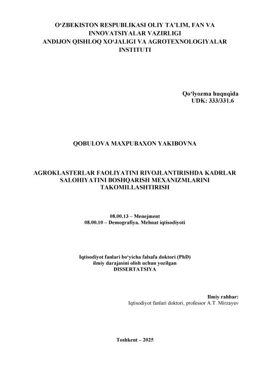 Agroklasterlar faoliyatini rivoj... Manba muallifi: Qobulova M.Ya.
