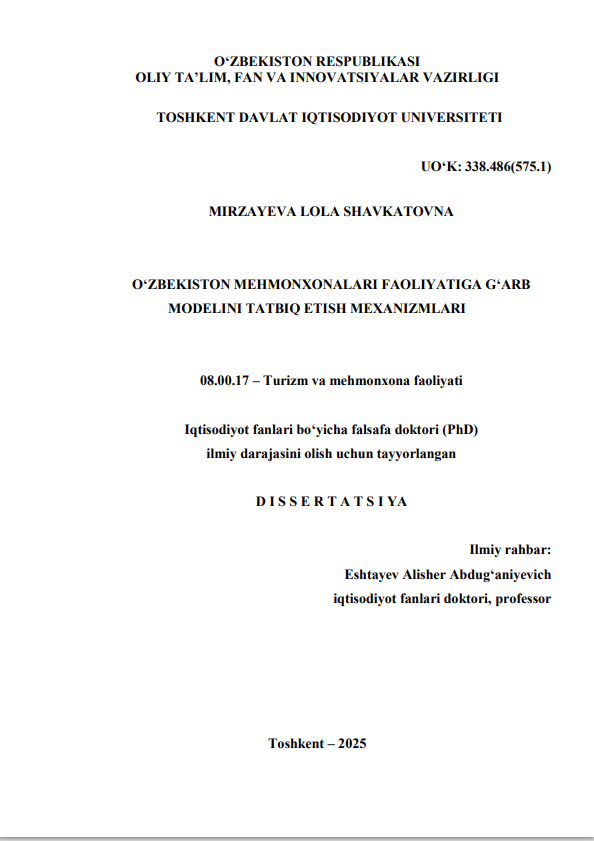 O'zbekistonda turizm sohasini si... Manba muallifi: Saidova D.A.