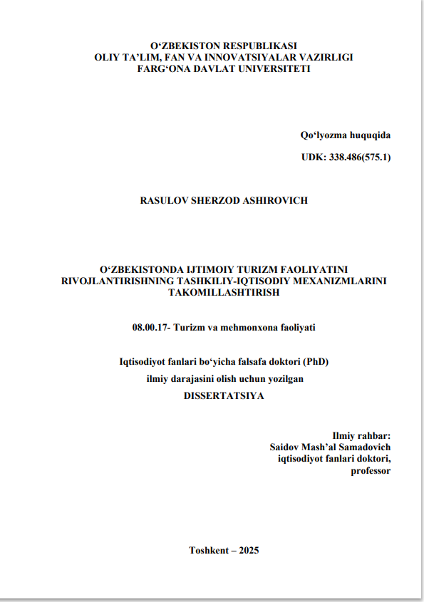 Oʻzbekistonda ijtimoiy turizm fa... Manba muallifi: Rasulov Sh.A.