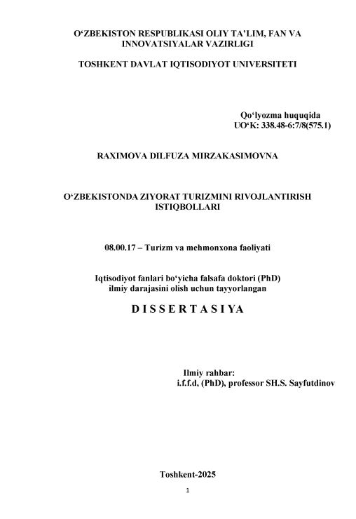 Oʻzbekistonda ziyorat turizmini ... Manba muallifi: Raximova D.M.