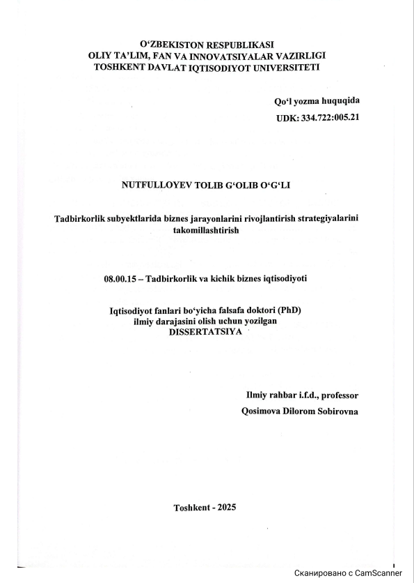 Tadbirkorlik va kichik biznes iqtisodiyoti