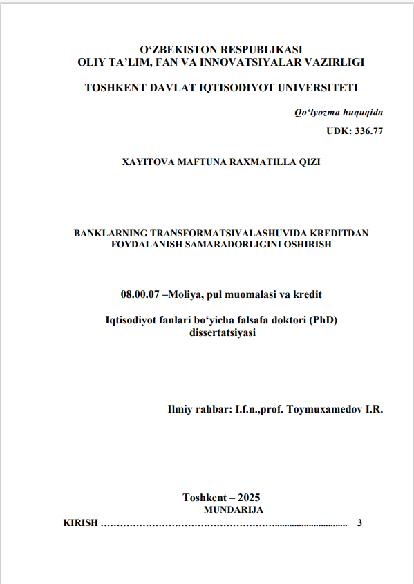 Banklarning transformatsiyalashu...