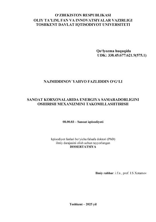 Sanoat korxonalarida energiya sa... Manba muallifi: Najmiddinov Y.F.