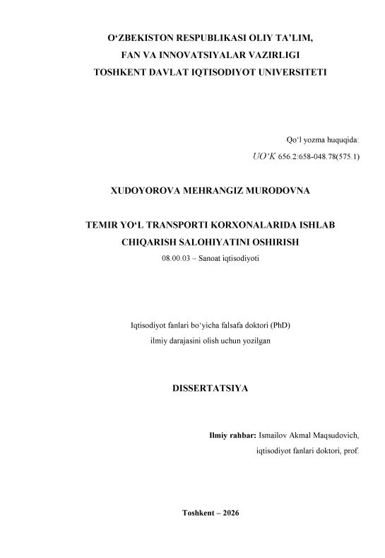 Temir yo‘l transporti korxonalar... Manba muallifi: Xudoyorova M.M.