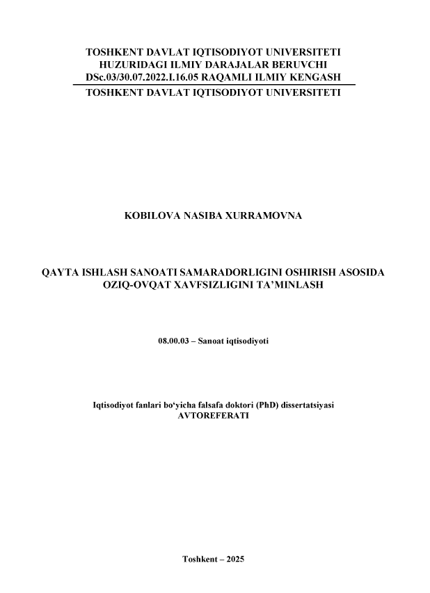 Qayta ishlash sanoati samaradorl... Manba muallifi: Kobilova N.X.