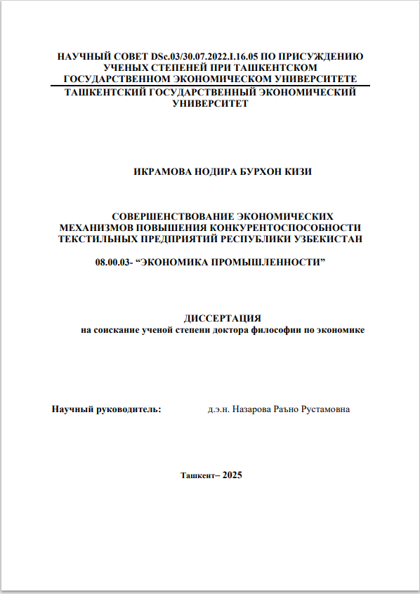 Совершенствование экономических ... Manba muallifi: Икрамова Н.Б.
