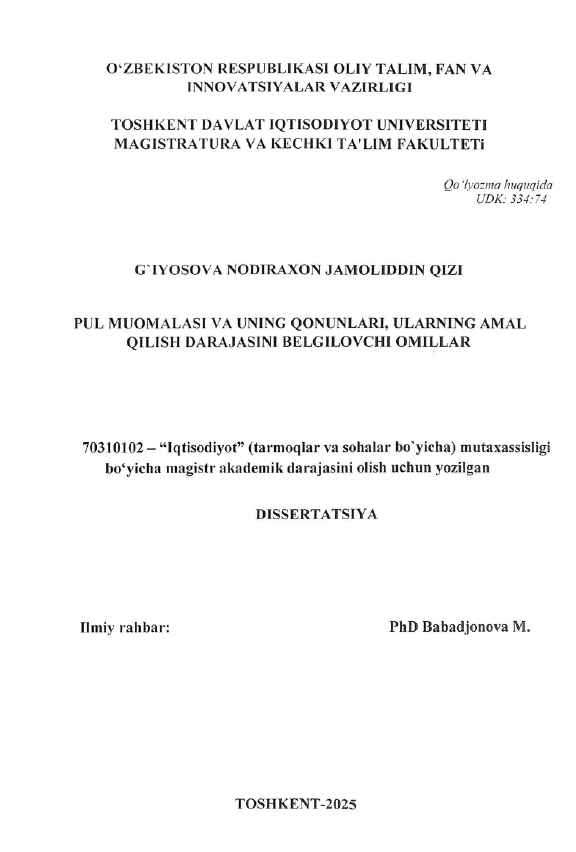 Pul muomalasi va uning qonunlari...