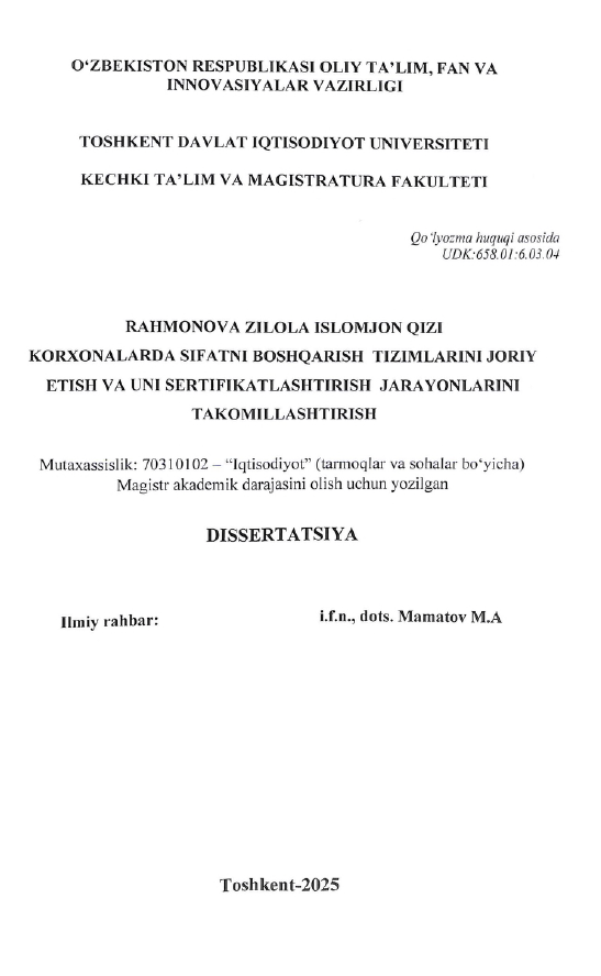 Korxonalarda sifatni boshqarish ...