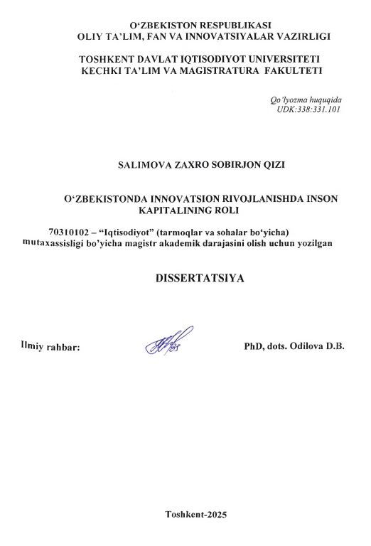 O'zbekistonda innovatsion rivojl... Manba muallifi: Salimova Z. S.