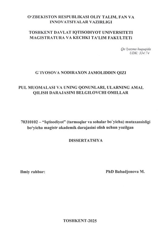 Pul muomalasi va uning qonunlari... Manba muallifi: G'iyosova N. J.