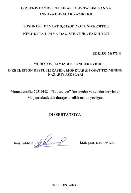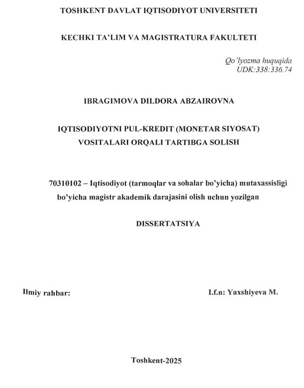 Iqtisodiyotni pul-kredit (moneta... Manba muallifi: Ibragimova D. A.