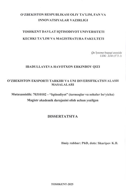 O'zbekiston eksport tarkibi va u... Manba muallifi: Ibadullayeva H. E.