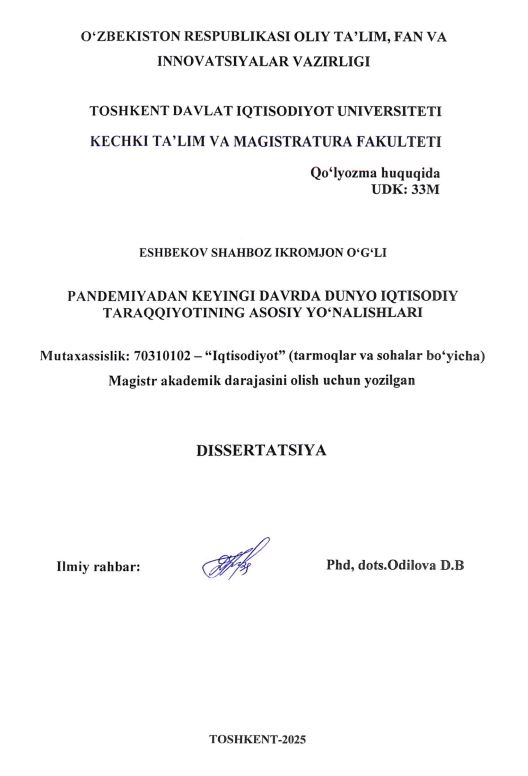 Pandemiyadan keyingi davrda duny... Manba muallifi: Eshbekov Sh. I.
