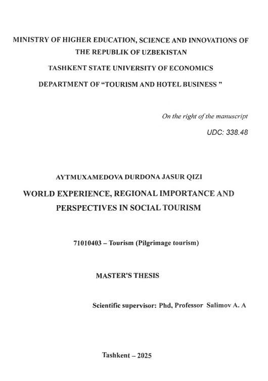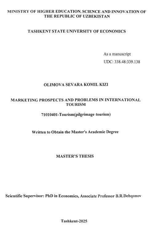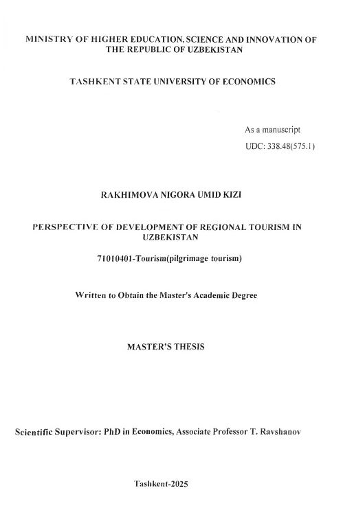 In Turizm va mehmonxona faoliyati, Ilmiy tadqiqotlar, Magistrlik dissertatsiyasi