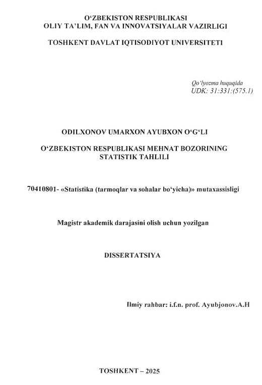 O'zbekiston Respublikasida mehnat bozorini statistik tahlili