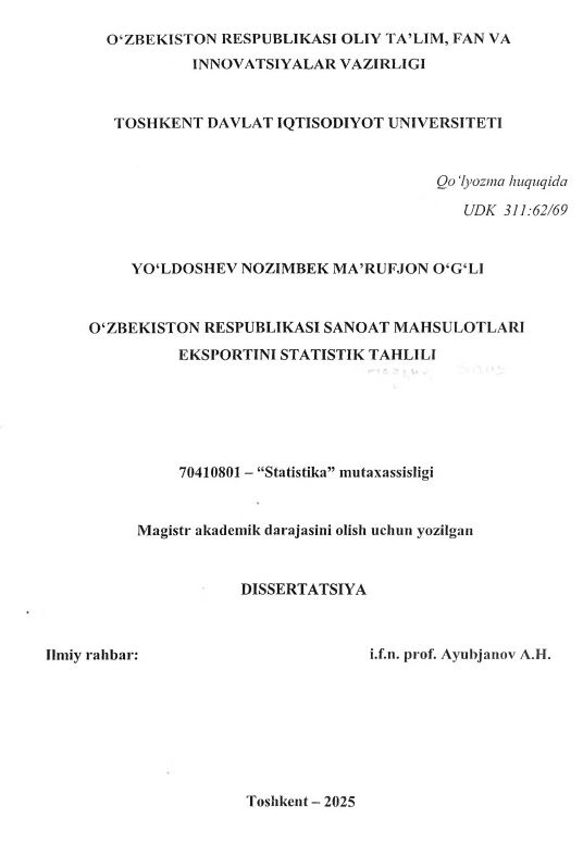 O'zbekiston Respublikasi sanoat mahsulotlari eksportini statistik tahlili