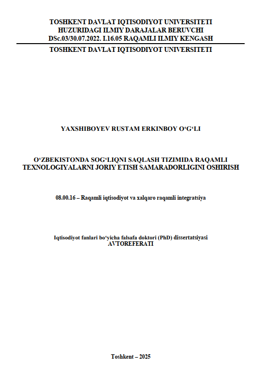 O‘zbekistonda sog‘liqni saqlash ... Manba muallifi: Yaxshboyev R.E.
