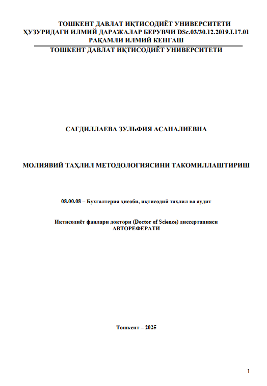 Молиявий таҳлил мeтодологиясини ... Manba muallifi: Сагдиллаева З.А.