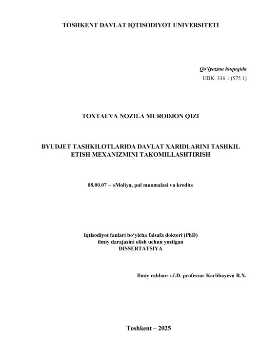 Давлат секторидаги олий таълим муассасаларда сметалар ижроси ҳисоби ва ҳисоботини такомиллаштириш