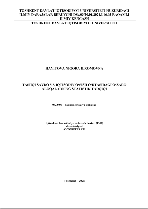 Tashqi savdo va iqtisodiy o'sish... Manba muallifi: Hayitova N.I.