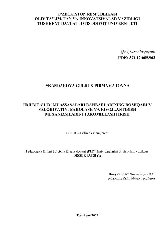 Umumta’lim muassasalari rahbarlarining boshqaruv salohiyatini baholash va rivojlantirish mexanizmlarini takomillashtirish