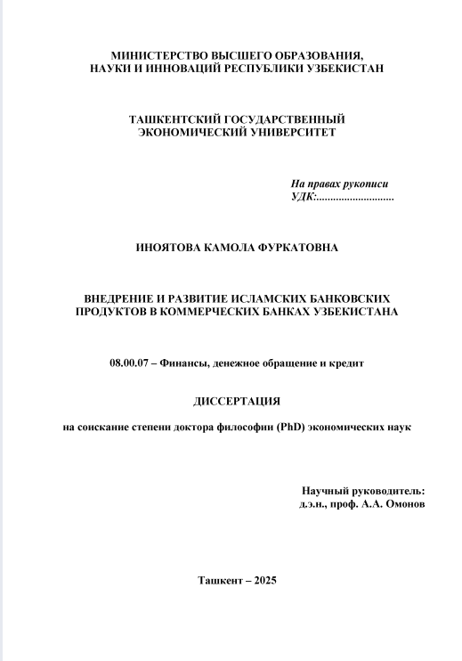 Внедрение и развитие исламских банковских продуктов в коммерческих банках Узбекистана