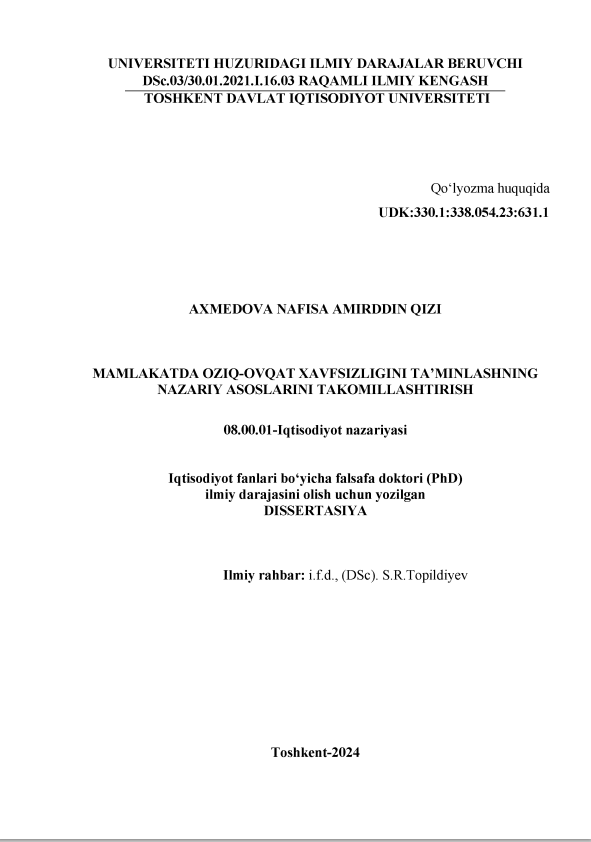 Mamlakatda oziq-ovqat xavfsizligini ta’minlashning nazariy asoslarini takomillashtirish