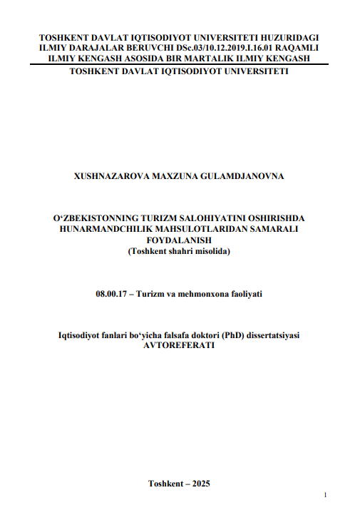 Mamlakatda turizm samaradorligin... Manba muallifi: Xakimov D.Z.