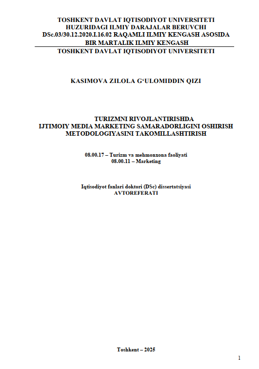 Turizmni rivojlantirishda ijtimo... Manba muallifi: Kasimova Z.G'.