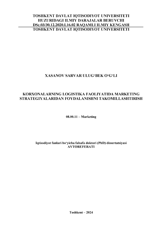 Korxonalarning logistika faoliyatida marketing strategiyalaridan foydalanishni takomillashtirish
