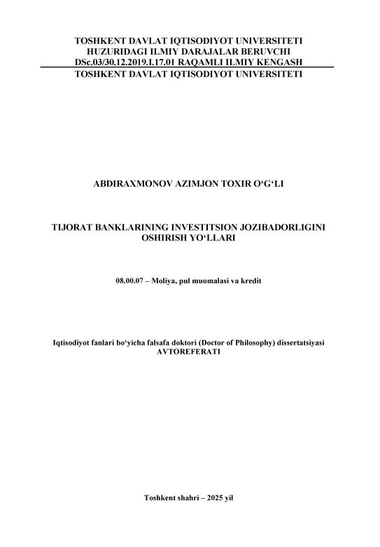 Tijorat banklarining investitsio...