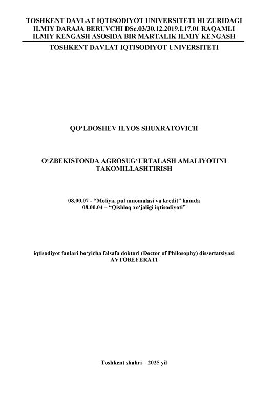 O‘zbekistonda agrosug‘urtalash a...