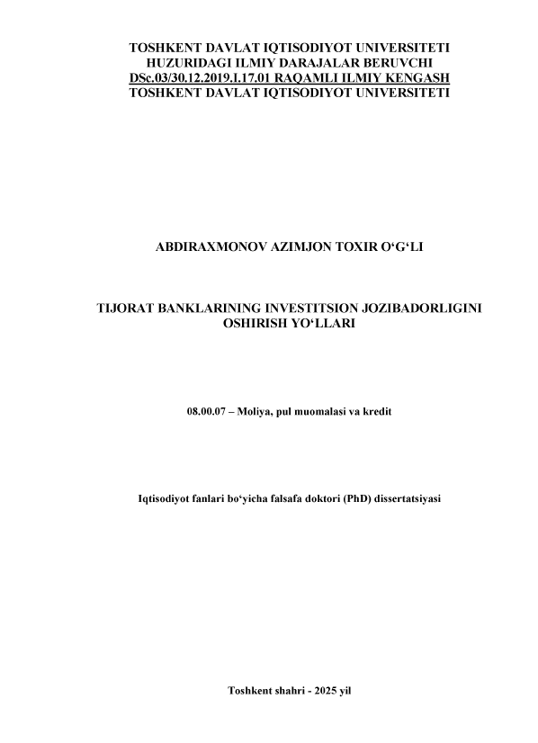Tijоrаt bаnklаrining investitsiо... Manba muallifi: Abdiraxmonov A.T.