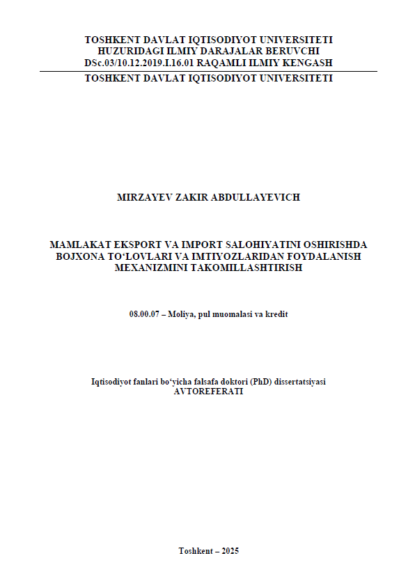 Mamlakat eksport va import saloh... Manba muallifi: Mirzayev Z.A.