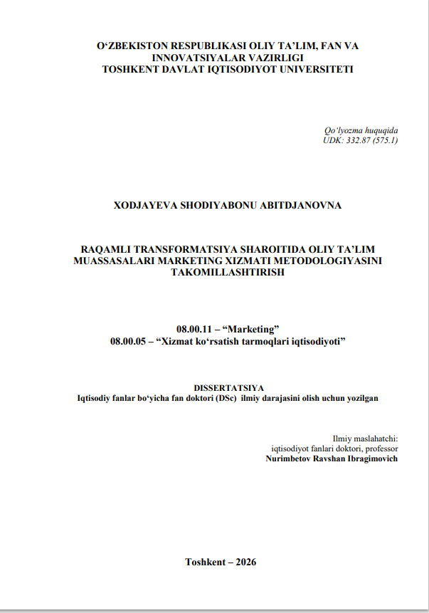 In Xizmat kо‘rsatish tarmoqlari iqtisodiyoti, Marketing, Fan doktori dissertatsiyasi (DSc), Fan doktori dissertatsiyasi (DSc)