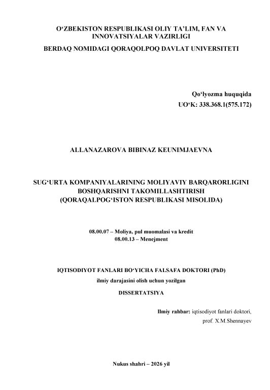 Sug‘urta kompaniyalarining moliy...