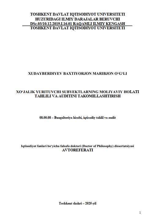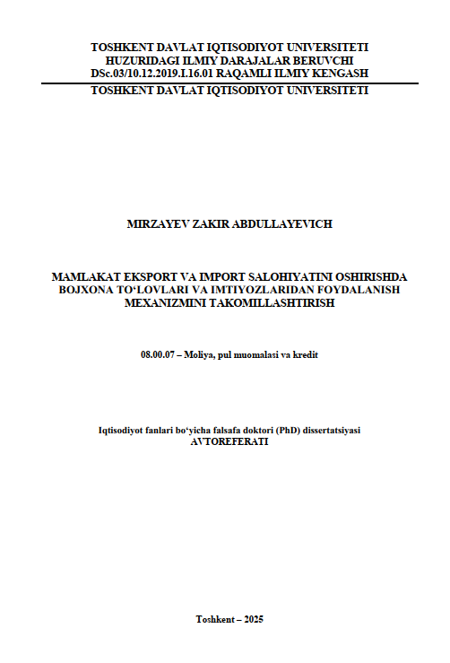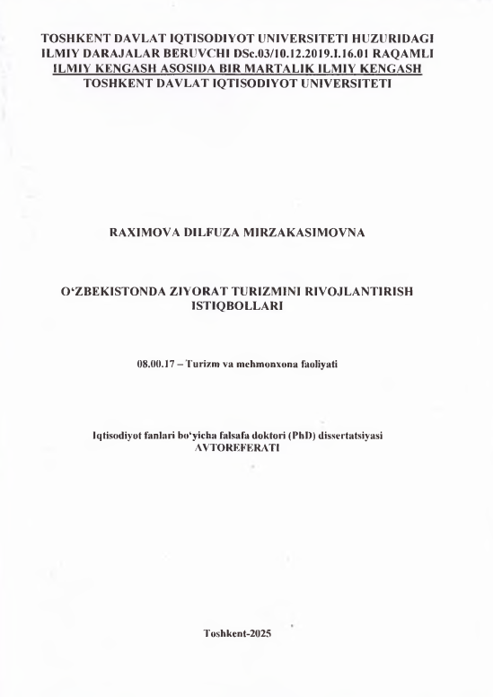 In Turizm va mehmonxona faoliyati, Dissertatsiya avtoreferati