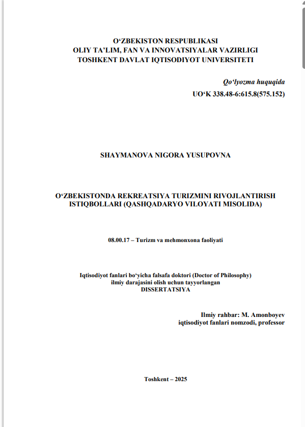 O‘zbekistonda rekreatsiya turizm...