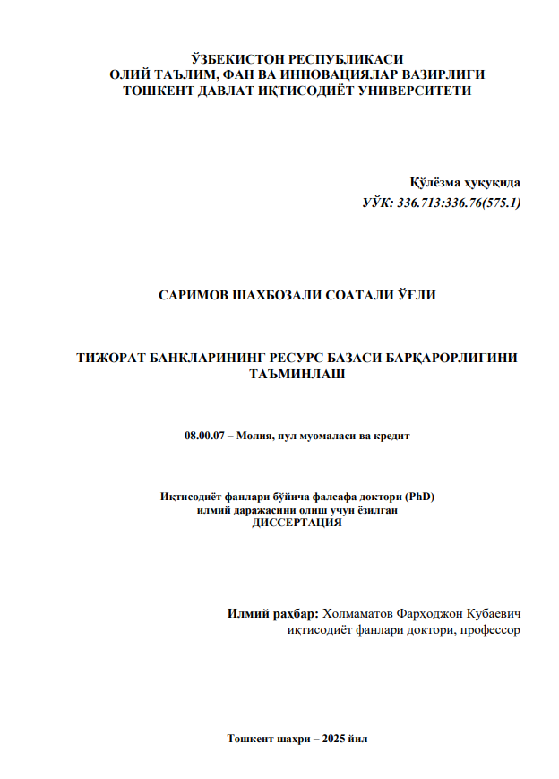Тижорат банкларининг ресурс база...